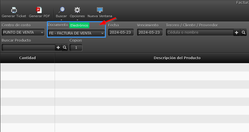 Una vez se haya declarado la contingencia tipo 04, se deberá hacer registrar la venta haciendo uso del documento electrónico que se usa habitualmente, en este caso el prefijo FE-FACTURA ELECTRÓNICA DE VENTA.